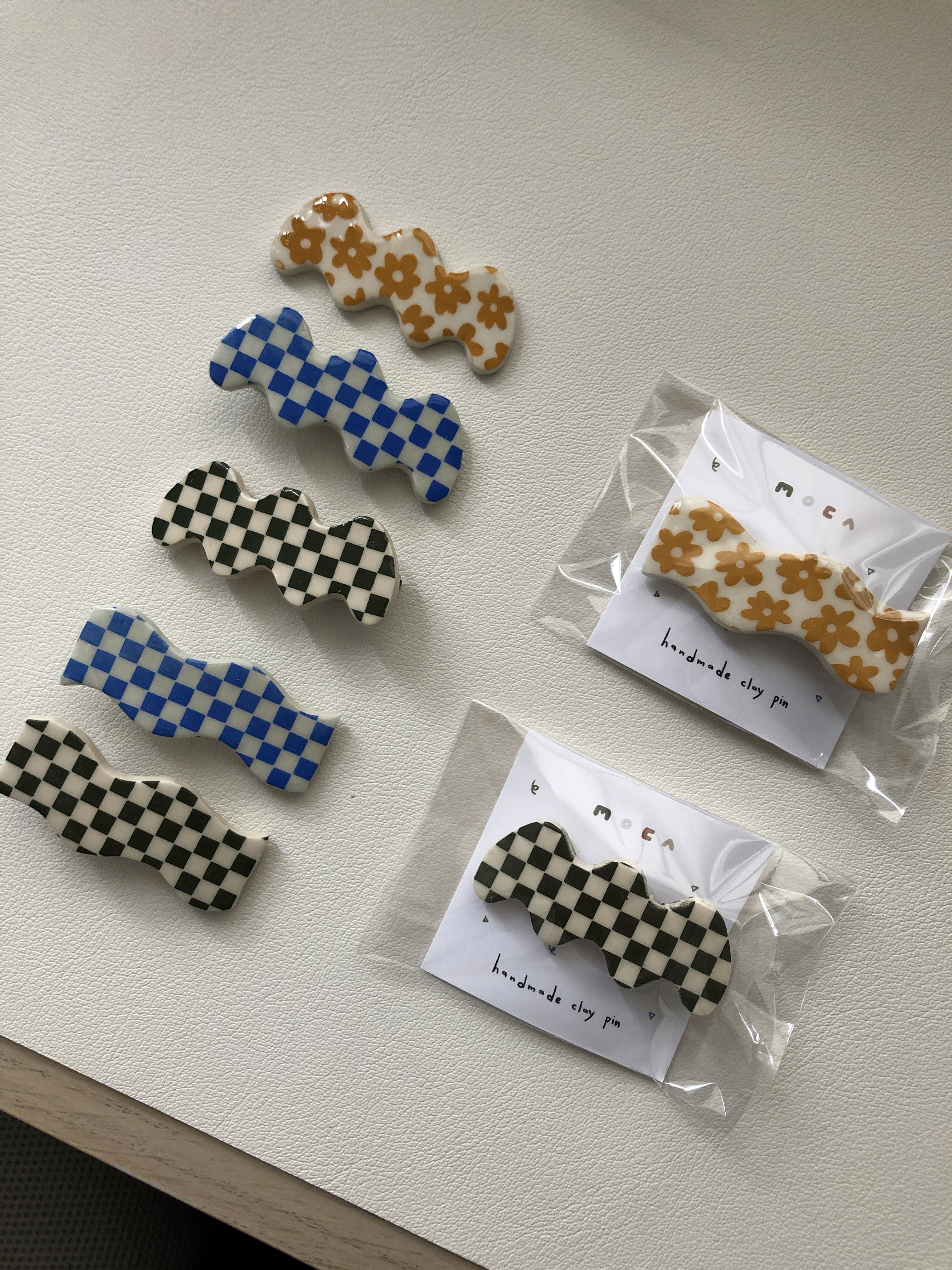 Handmade clay pins can be used as a hair pin, tie bar, etc.